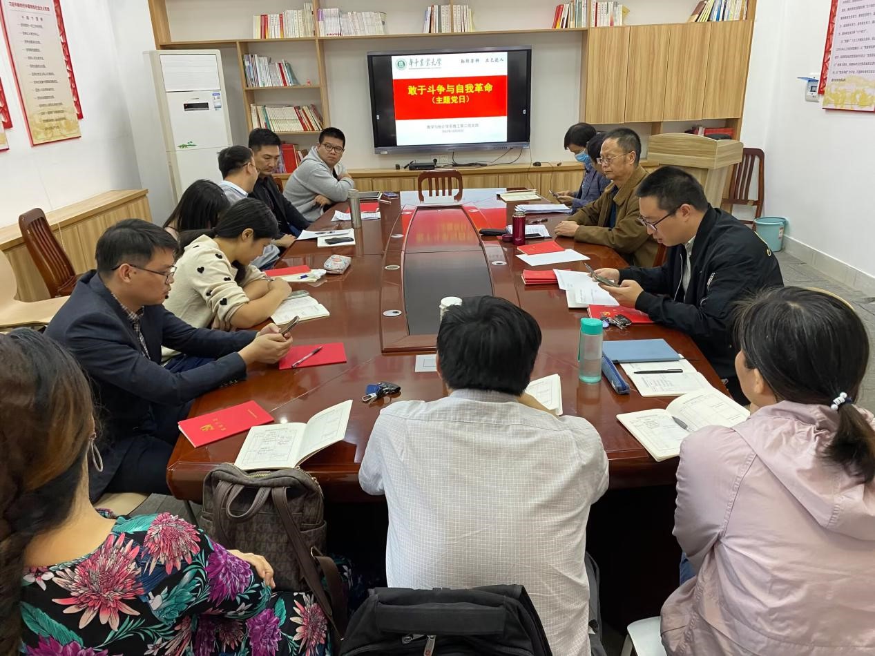 (通讯员:韩朋举)10月20日下午,数学与统计学系教工第二党支部在逸夫楼B109党群之家开展主题党日活动,重点学习党的二十大报告和《习近平谈治国理政》(第四卷)第四、二十一章有关“敢于斗争与自我革命”的内容。支部全体党员参加研讨,活动由支部书记董旺远主持。