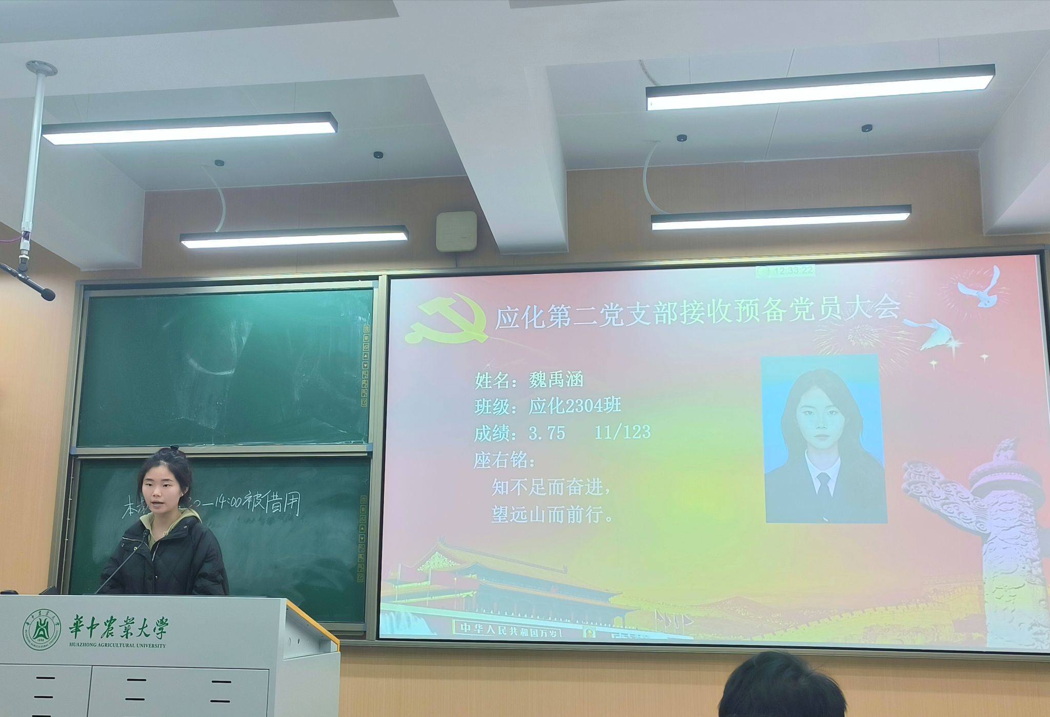 应用化学本科生第二党支部于第二教学楼103教室隆重召开了预备党员接收大会。