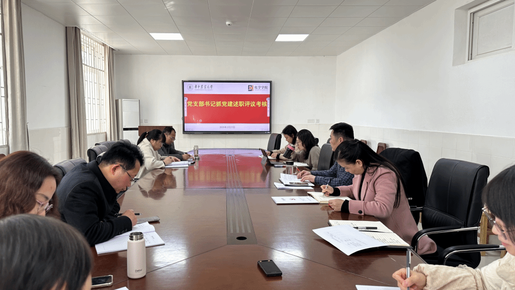 2024年度党支部书记抓党建述职考评在化学楼A106会议室举行,学院党委班子成员、各教工党支部书记和委员参加会议。学院党委书记涂俊才主持会议。
