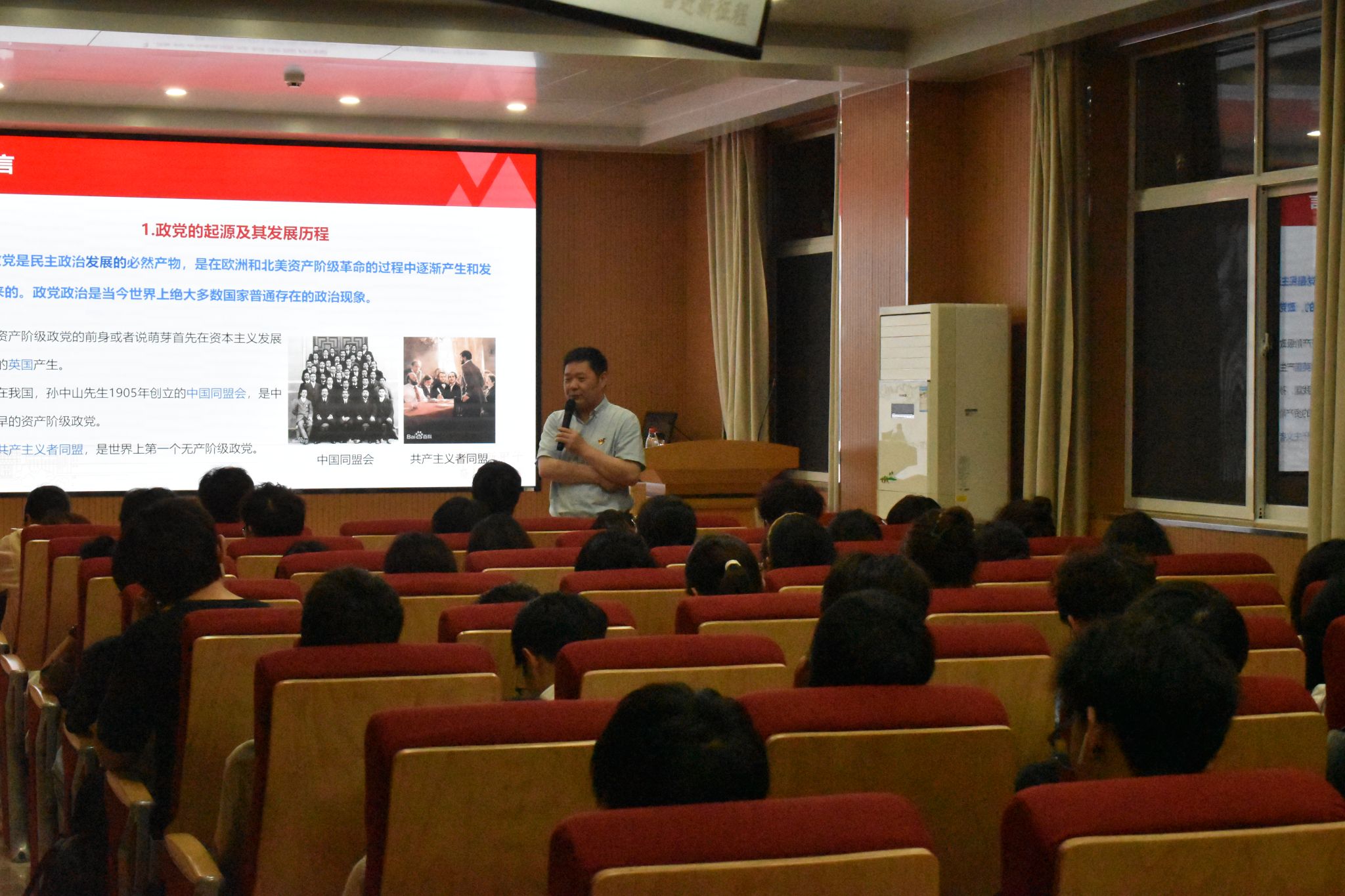 积极分子、发展对象、预备党员讲授了以“中国共产党的性质、理想、宗旨”为主题的入党教育培训班专题党课。