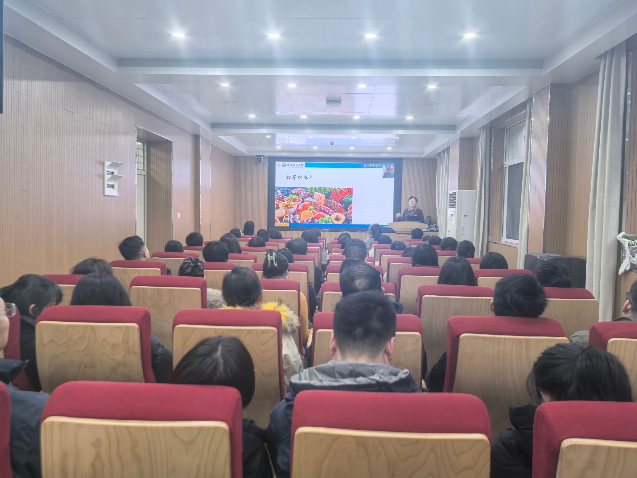 曹敏惠教授担任分享嘉宾,报告厅现场座无虚席、人气爆棚,来自校内外的120名教师现场参会,420名教师通过雨课堂直播线上参会。
