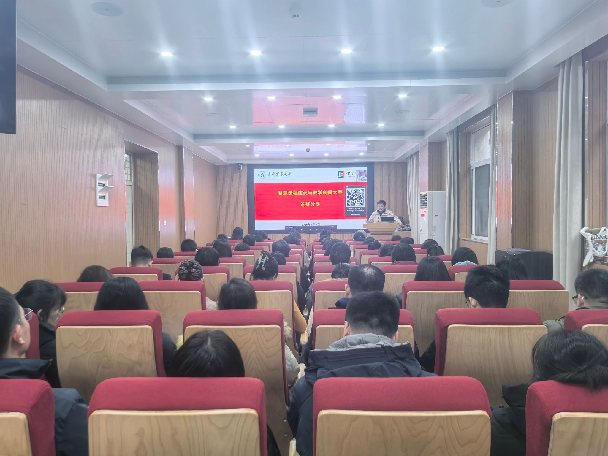 在化学楼A102报告厅举办智慧课程建设与教学创新大赛备赛分享活动。活动邀请到武汉理工大学廖红教授、华中师范大学李睿教授、麻豆