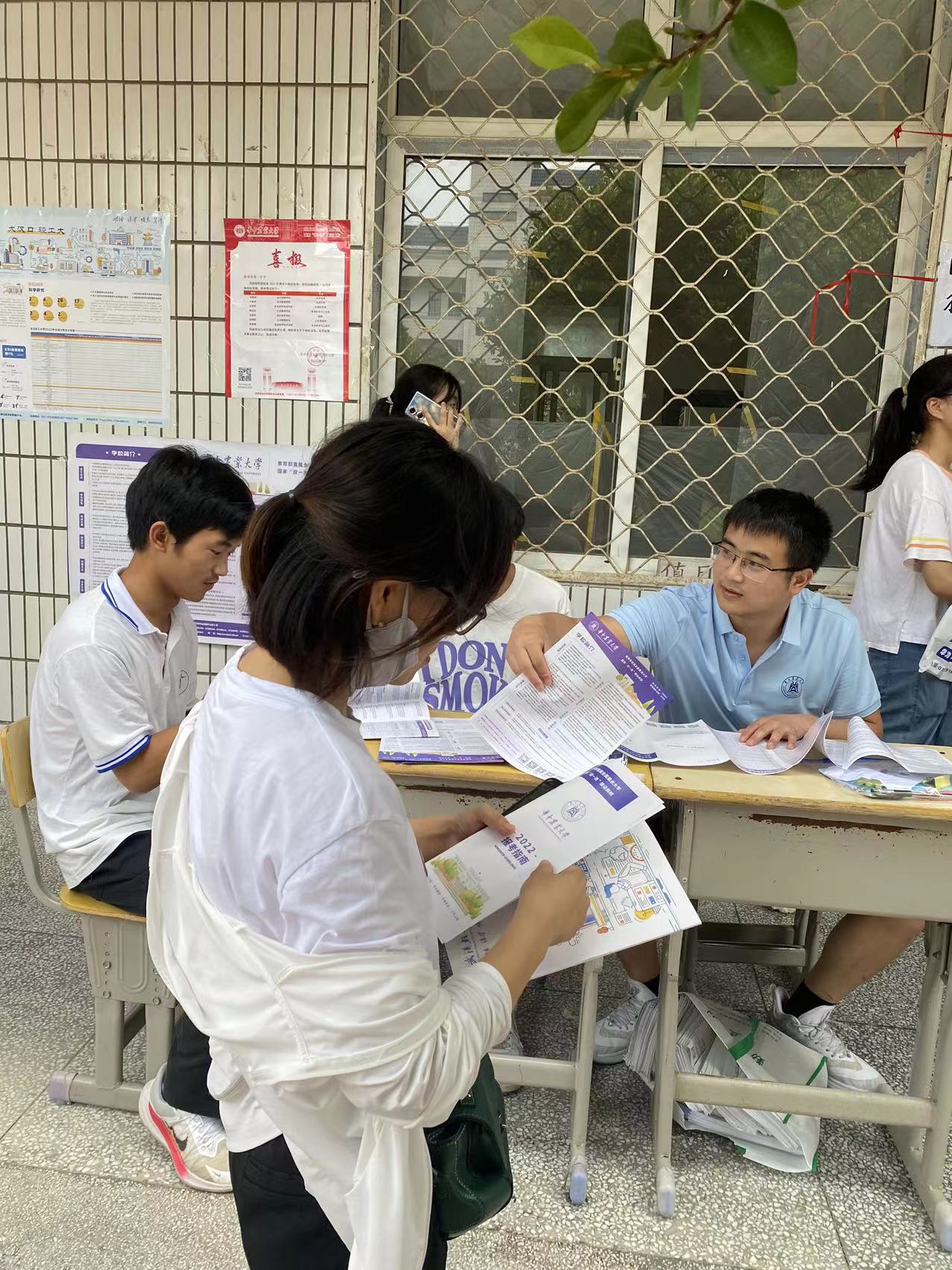 6月24日-6月27日,项勇刚教授和程思源老师共同前往安徽招生,在安徽的4天3晚中,项老师和程老师共到访5所中学,行程安排虽满,但是每一站两位老师都认真对待,本科毕业于华农应用化学专业的项老师不仅对理工科专业侃侃而谈,更在家长咨询到文史类专业时给出了丰富的建议,项老师以其丰富的知识储备,吸引了大批家长学生驻足,有的时候,光是和一位同学聊天,项老师就可以聊上半个小时。回来后,他依然每天在安徽招生群中答复同学们的问题,他说:“我是很愿意为学校去招生的,吸引优质生源来到我们的学校,我也希望未来学院的招生队伍能更加壮大!”