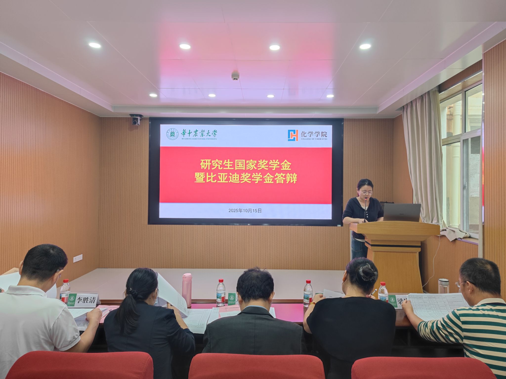 于10月15日上午9:30在化学楼A102会议室举行2025年国家奖学金暨比亚迪奖学金评审会。会议由研究生辅导员马明钰主持。