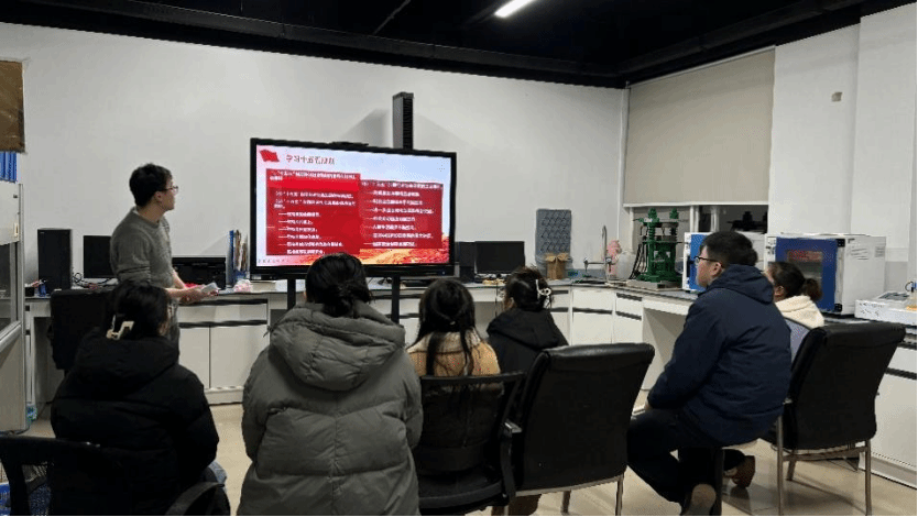 党支部书记余紫阳领学党的二十届四中全会精神。他聚焦讲话中关于持之以恒推进全面从严治党的论述,强调作风建设的重要性,提醒同学们深入贯彻中央八项规定精神学习教育,提高思想觉悟,培养优良作风。他倡议全体党员牢记习近平总书记嘱托,深刻领会国家发展方向,将个人的理想追求融入党和人民的事业中去。
