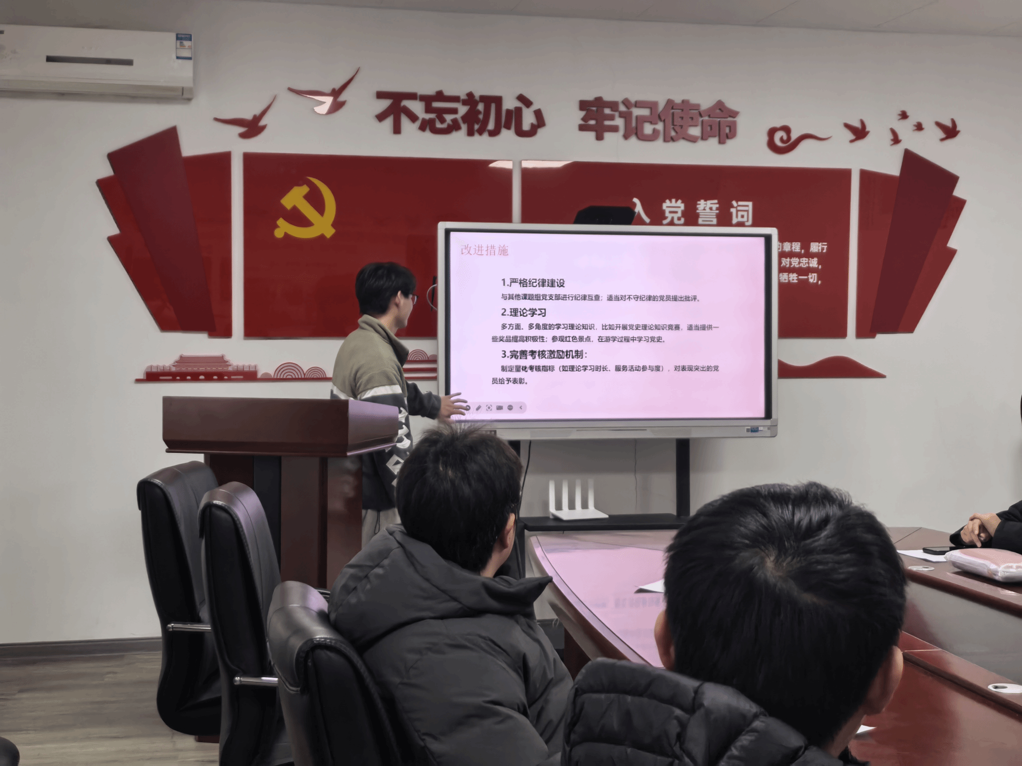 会议最后,罗华杰作总结讲话。他表示,未来支部将持续深化理论学习,丰富学习形式与载体,计划开展党史知识竞赛并设置激励奖品,提升党员学习积极性;组织赴红色教育基地参观研学,在实地践学中感悟初心使命。同时,将严格落实 “三会一课” 制度,坚持每月召开支部委员会;进一步规范党员发展流程,扎实做好入党积极分子与预备党员的培养、教育和考察工作,不断提升支部标准化规范化建设水平。
