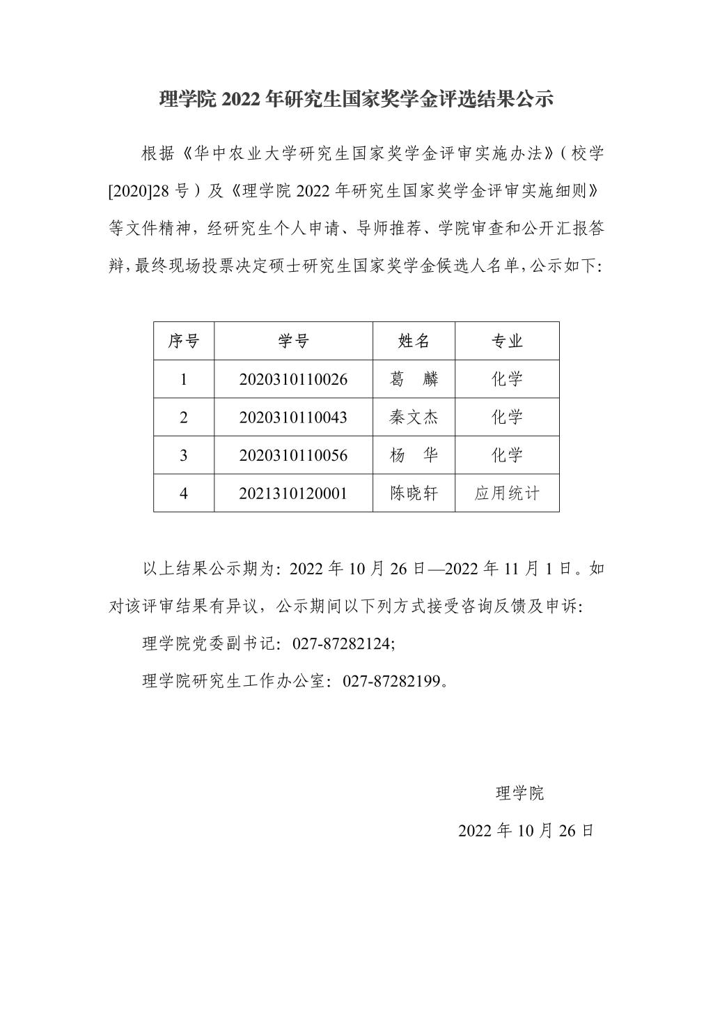 理学院2022年研究生国家奖学金评选结果公示