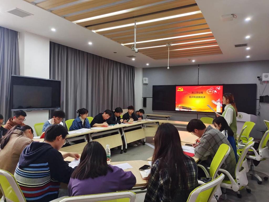 研究生第一党支部2023年度组织生活会暨民主评议党员大会在逸夫楼B221召开,党支部书记李春吟主持会议,支部全体党员参会,研究生辅导员刘畅参会指导。