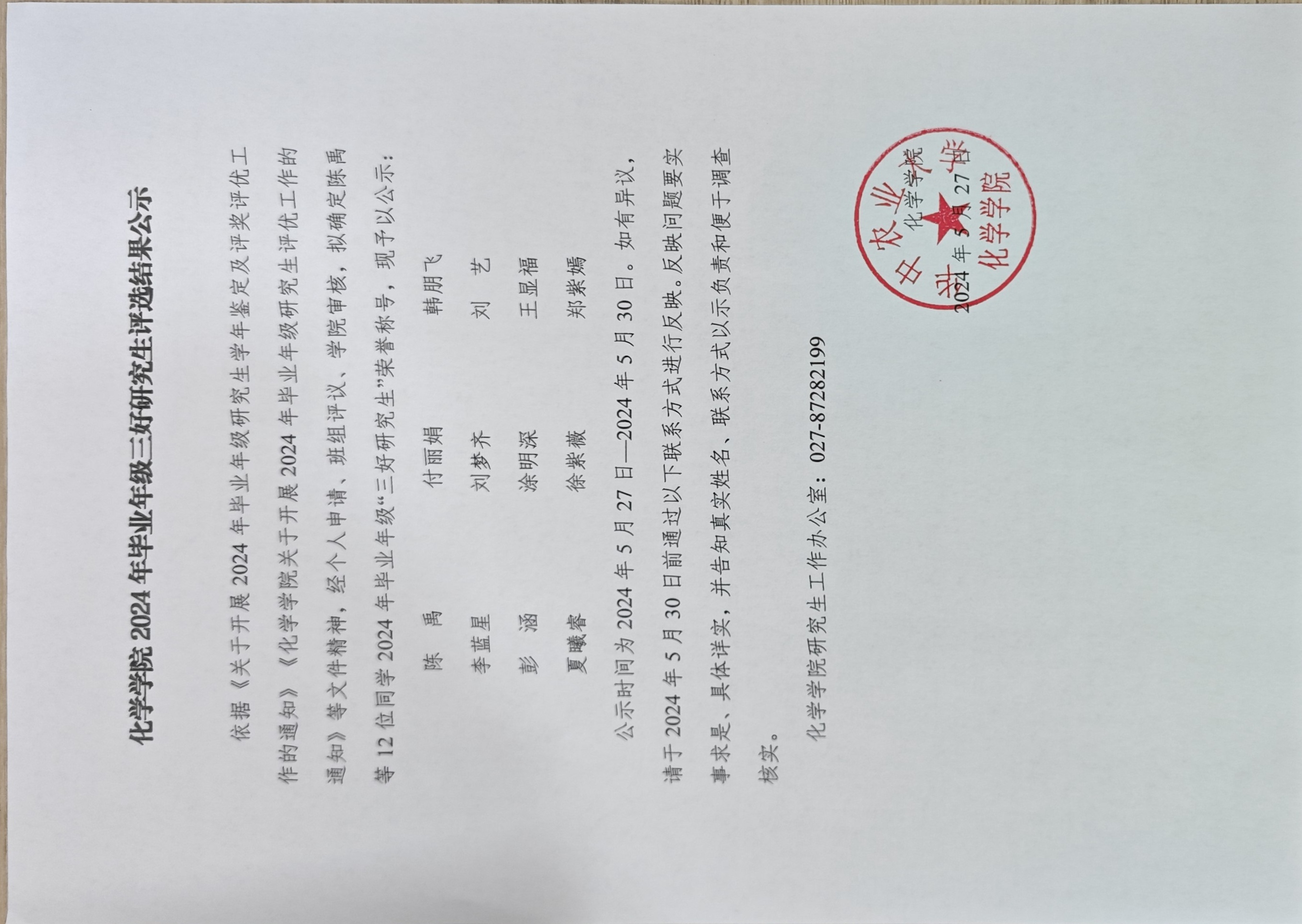 麻豆 2024年毕业年级三好研究生评选结果公示