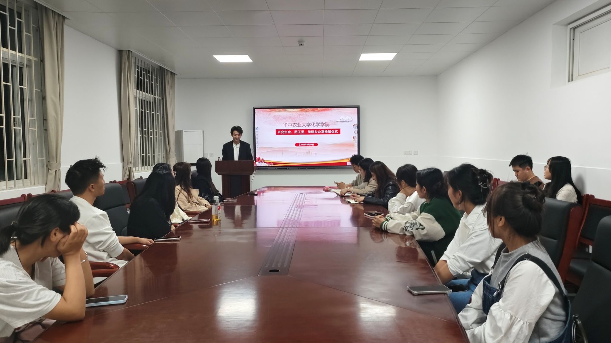 2025-2026届党团学骨干聘任仪式在化学楼A106报告厅举行。研究生辅导员马明钰和新一届党团学全体骨干参加会议,共同见证学生工作承前启后的重要节点,会议由周振东同学主持。