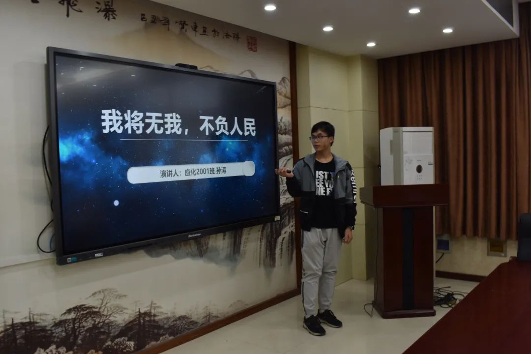 应化2001孙涛讲述了兰考县60年来的变化。60年代的兰考饱受风沙、盐碱、内涝“三害”之苦,而如今的兰考旧貌换新颜,由昔日的经济洼地,成为了经济的聚宝盆,这一切的变化都离不开党的好同志——焦裕禄多年的辛勤付出。当读到“为官一任,造福一方,遂了平生意。绿我涓滴,会它千顷澄碧”时,他眼含热泪,慷慨激昂。