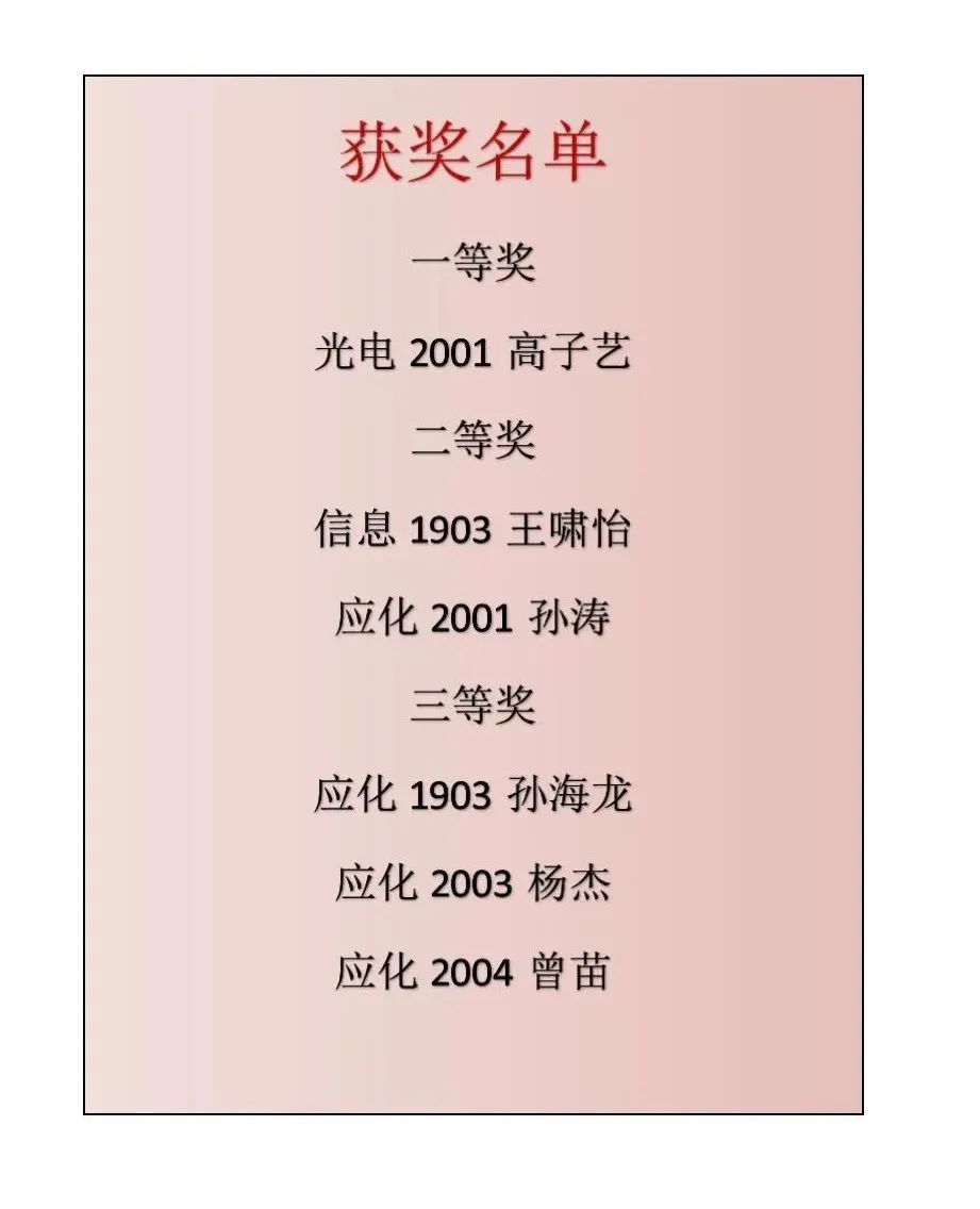 本次比赛共有9位同学参与,最终本次比赛获奖名单如下。
