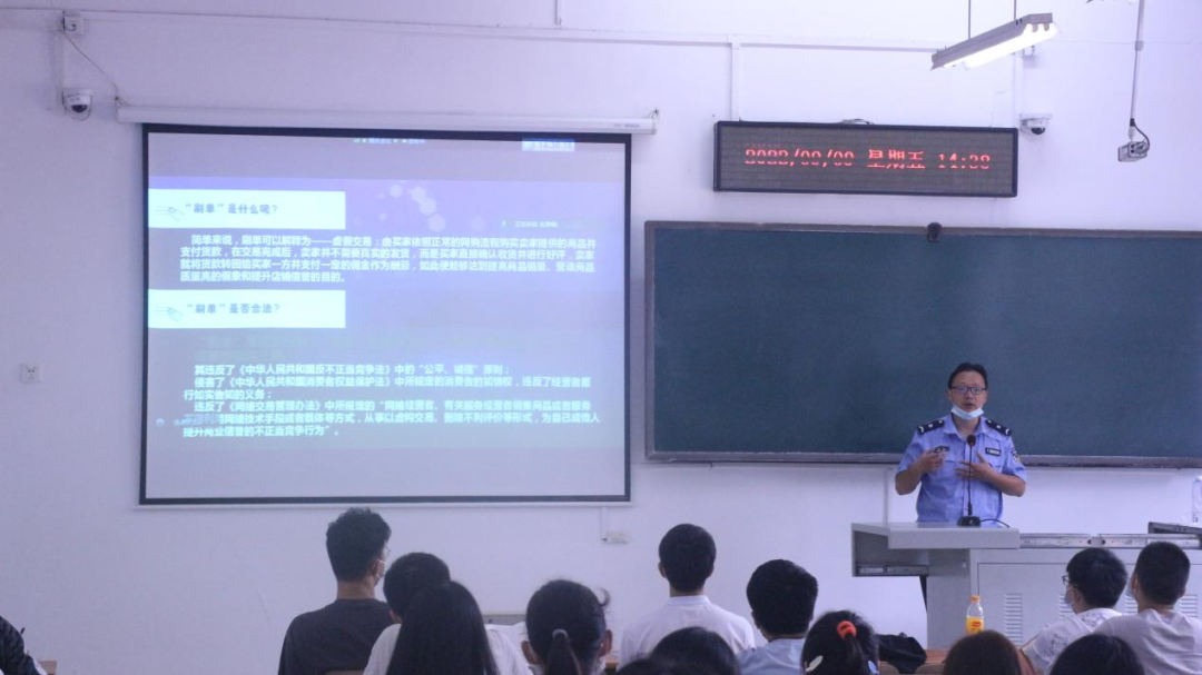 为切实做好安全防范教育,预防和减少电信诈骗的发生,理学院邀请了南湖派出所民警郭锋为全院学生开展防诈骗安全教育,近日,讲座在三教以“主会场+分会场直播”的形式顺利举办。