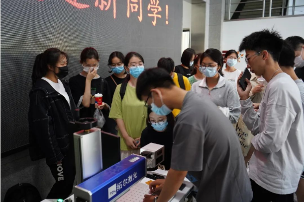 光电2101秦树蕾同学感慨道:“给学弟学妹们分享有关激光打标机的知识,教他们亲手打印自己的徽章,看到他们脸上的笑容,虽然累,但很值得。”