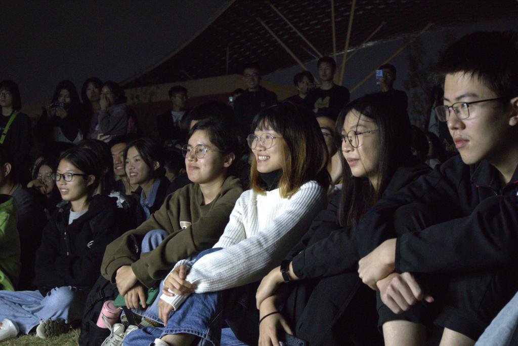 “咚咚锵、咚咚锵……”开幕锣鼓声响起,剧目《西游记》选段一上场就得到了同学们的阵阵掌声,悟空的聪明活泼、龙腾虎跃,八戒的傻气愚笨被惟妙惟肖地展现在幕布上,一幕幕生动的画面引得现场笑声不断。皮影人物之间你来我往,嬉笑玩耍栩栩如生,各类人物色彩鲜明,似乎伸手就能感受到它们的存在。幕布后的表演者们挥舞着木棍,人物在他们手中仿佛被赋予了生命,使得满台生辉,高潮迭起。隔着幕布,台前同学们的全神贯注与台后表演队的认真演绎,在中心广场上形成了一道亮丽的风景线。