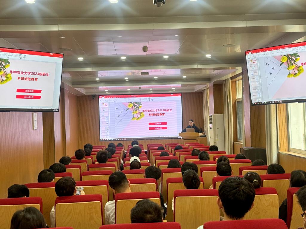 于化学楼A102开展科研诚信教育主题班会,旨在强化研究生新生的科研诚信意识。此次班会由辅导员马明钰老师主持,全体2024级研究生新生参与。