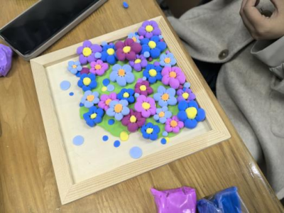 活动接近尾声,预科 2402 班的杨煦恒兴奋地分享道:“小时候玩橡皮泥总是不太成功,这次的黏土制作体验太棒了,不仅让我接触到了新型黏土,还让我牢牢记住了‘醒泥’这个关键步骤,收获满满!” 预科 2403 班的李雅琦也满脸喜悦地说:“在制作黏土画时,我完全沉浸其中,所有的坏情绪都随着创作消散了,真的特别解压!”