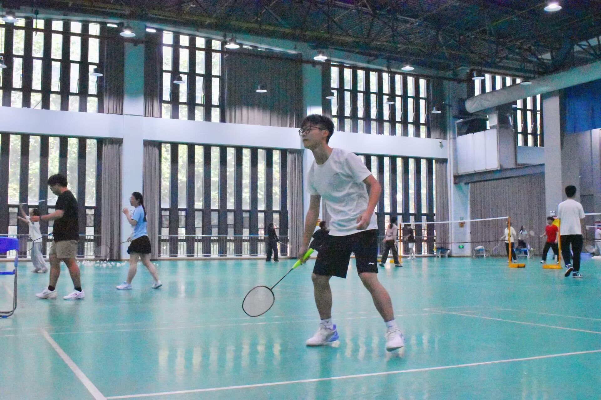 8点整,比赛正式拉开帷幕。赛场上,同学们斗志昂扬,应化2304班郑琳萱的表现十分精彩,她时而网前截击,时而大力扣杀。精彩的对拉回合引得观众阵阵欢呼。选手们都在球场上挥洒汗水,他们精湛的球技和顽强的拼搏精神,充分展现了同学们的青春活力与蓬勃朝气。