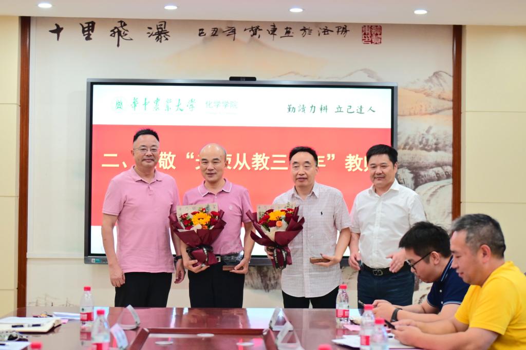 致敬光荣从教30年教师,曹敏惠回顾了胡先文和李雪刚两位老师在其教学期间做出的贡献及其获得的成果。两位老师真情实感地回顾过去展望未来,用外在的平凡和内在的不平凡,生动诠释了对教书育人的热爱,对学院和学生的满腔热忱,三十年坚守初心、呕心沥血、默默奉献的坚持,让在场的每一个人都感受到了桃李不言、下自成蹊的喜悦。胡老师回忆道:“他从21岁入职学校,在土化楼办公,当时只有公共基础课,到现在成立麻豆