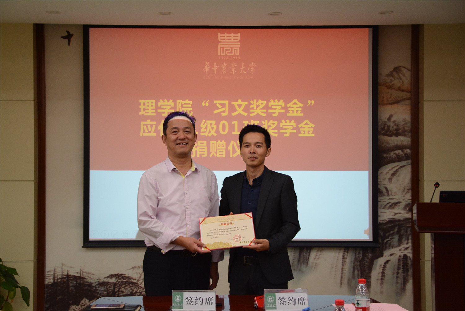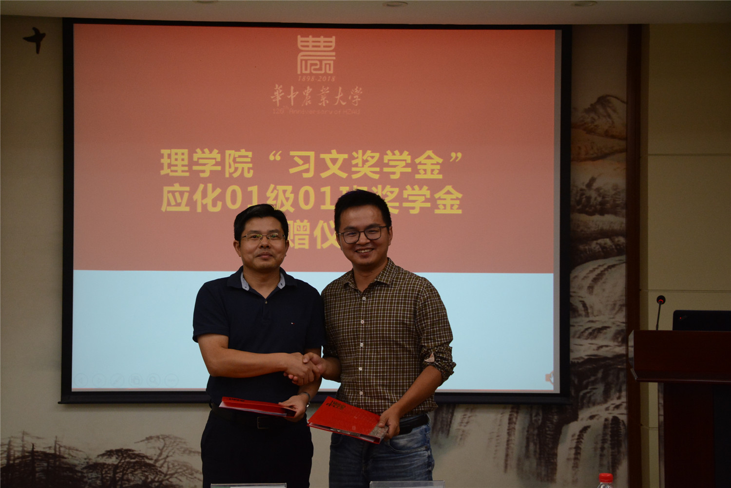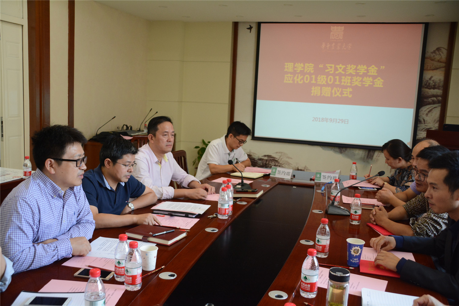 9月29日,理学院“习文奖学金”、应化01级01班奖学金捐赠仪式在逸夫楼B212举行。校友许习文,应化01级01班代表项勇刚,学校校庆工作办公室副主任付军,理学院党委书记李金发,院长陈浩以及教师代表参加了捐赠活动。捐赠仪式由理学院副院长吴承春主持。