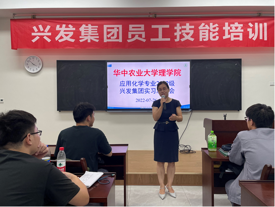 (通讯员:高晨皓、温欣灵)7月26日,理学院2019级应用化学专业实习总结会在兴发集团研发中心培训室进行。会议由薛爱芳老师主持,理学院曹敏惠副院长、康勤书老师、李俊老师、王金玲老师、张杰老师以及2019级兴发集团全体实习学生出席会议。