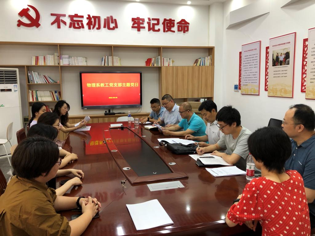 (通讯员:后德家)202269日下午,物理系教工党支部在逸夫楼B109开展主题党日活动,会议由支部书记陈建军主持。