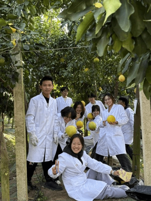 在刘永红老师和段丽君老师的共同组织与带领下,同学们以饱满的热情投入到柑橘果实样品采摘实践中。大家分工协作,严格按照操作规程,认真进行果实的筛选、采集、分类和包装。尽管汗水浸湿了衣衫,但面对挂满枝头的累累硕果和亲手完成的劳动成果,每位同学的脸上都洋溢着喜悦与自豪。在大家的共同努力下,最终保质保量地完成了既定的实验样品采摘任务。