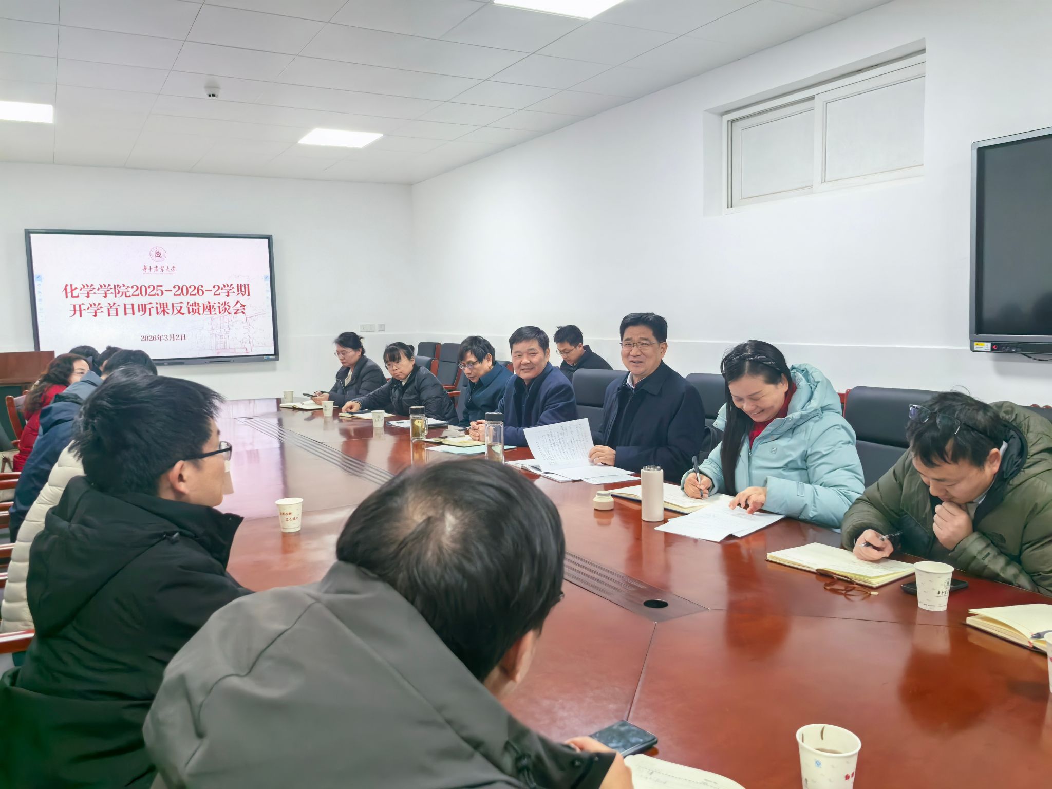 在化学楼A106会议室召开2025-2026-2学期开学周听课反馈座谈会。校党委副书记李向东、各职能部门负责人、学院班子成员、教学督导员及任课教师参加座谈。会议由麻豆