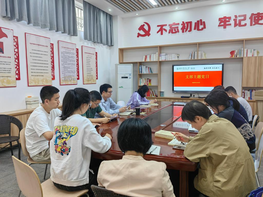 支部成员同志围绕着主题教育进行了集体学习。成协设带领大家学习了《新时代高校教师职业行为十项准则》,他强调,要恪守师德师风第一标准,牢固树立底线意识,切实增强遵守《准则》的思想自觉和行动自觉。熊锦同志领学了习近平总书记在中央政治局第四次集体学习时的重要讲话精神,张杰同志领学了习近平总书记在学习贯彻新时代中国特色社会主义思想主题教育工作会议上的重要讲话精神,支部组织委员杨晨茹带领大家学习了习近平总书记给中国农业大学科技小院学生的回信精神。