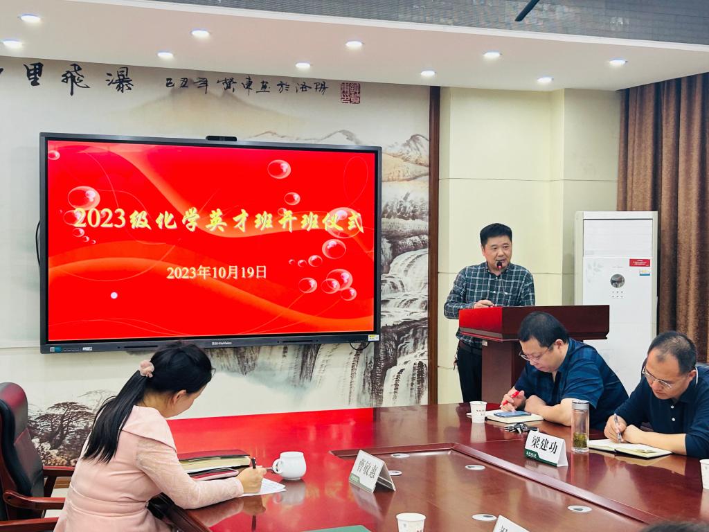 2023级“化学英才班”开班仪式在逸夫楼二楼会议室举行。学院党政班子成员、化学系班子成员、新生班主任及英才班班主任、教务秘书、2023级“化学英才班”全体学生参加仪式并展开交流。开班仪式由副院长曹敏惠主持。