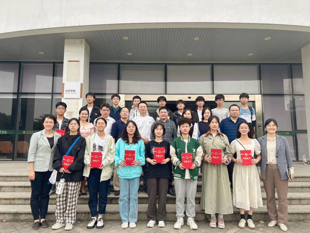 曹敏惠在开班致辞中介绍了化学英才班的发展历程,阐述了设立“化学英才班”的重要意义、定位、愿景和培养特色。学院党委副书记祝鑫宣布了2023级“化学英才班”遴选录取学生名单,学院党政班子成员为同学们颁发了录取证书。