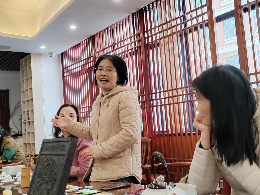 品茶环节中,教师们品尝着自己泡制的茶汤,交流着各自品茶的感受。张翠娥教授则向大家分享了关于“悦己”的重要性,倡导女性关爱自己,去享受生活。最后,教师们每人都得到了一个小茶罐,配有礼品袋、拉菲草、鲜花等用自己的想法进行了茶罐DIY,将自己喜欢的茶叶装入小茶罐中,可以自己留做纪念或赠予他人。