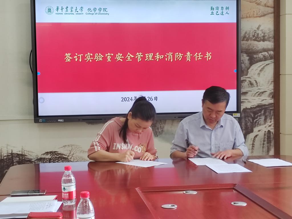 在逸夫楼B212举行实验室安全管理和消防安全签订暨首届研究生安全卫生督查员聘任仪式。党委书记涂俊才、副院长曹敏惠、副院长周静舫、化学实验教学中心副主任王嘉讯、石炜以及全体实验技术人员、科研实验室负责人、研究生安全卫生督查员等参加了本次会议,会议由周静舫主持。