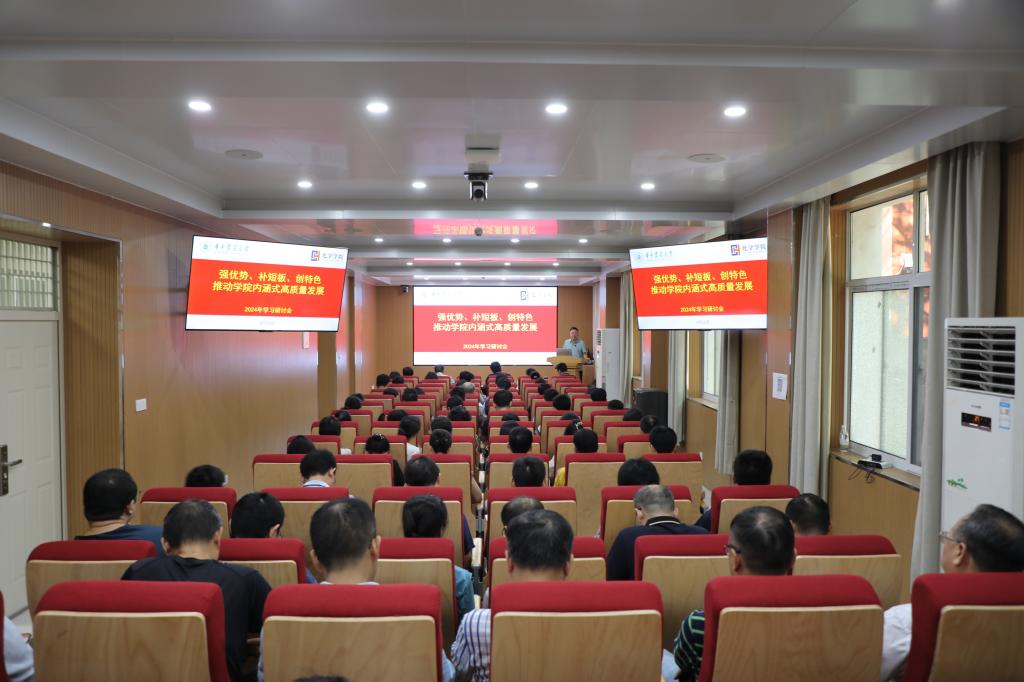 以“学习贯彻党的二十届三中全会精神,强优势、补短板、创特色,推动学院内涵式高质量发展”为主题召开全体教职工学习研讨会。会议邀请华中科技大学化学与化工学院院长谭必恩教授,武汉大学人事部、党委教师工作部部长付磊教授,西安交通大学麻豆