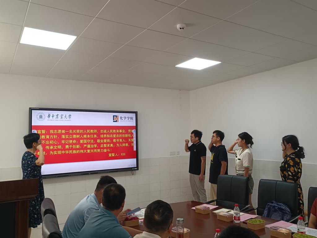 会议伊始,陈璐老师带领新任教师进行入职宣誓。“以立德树人为根本,以强农兴农为己任,为培养更多知农爱农创新性人才而不懈奋斗!”铿锵有力的誓词,表达着新任教师为教育事业奉献奋斗的信心与决心。学院院长曹菲菲教授为新生班主任和新生寝室导师颁发聘书,勉励他们在狮子山下南湖边书写人生新篇章。