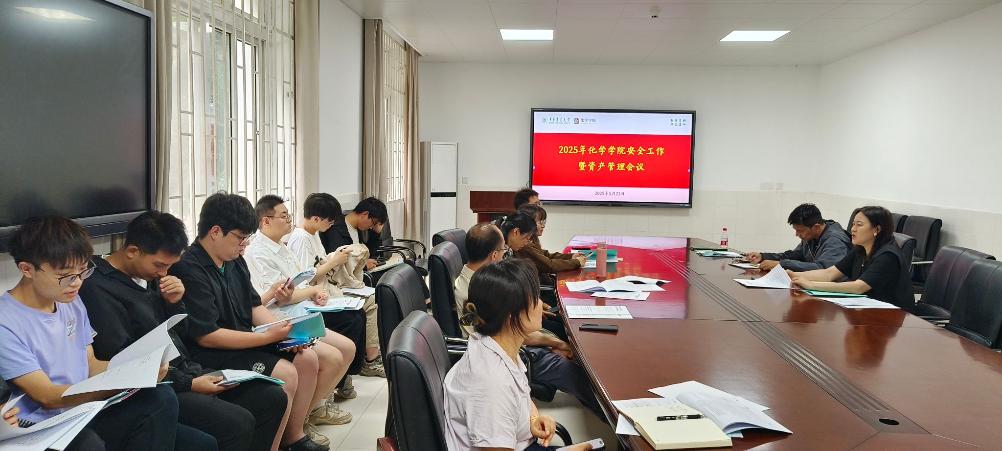 在化学楼A106召开了2025年安全保卫工作会议,副院长周静舫、化学实验教学中心全体专业技术人员、学院第二届安全卫生督查员参加会议,学院实验室安全专员赵蕾主持会议。