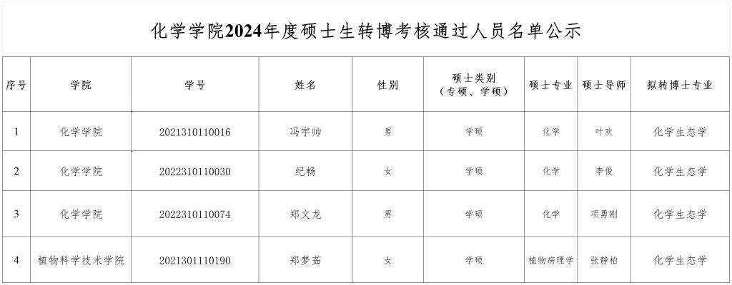 经个人提交申请、学院组织考核,麻豆 2024年度硕士生转博考核通过人员名单如下:
