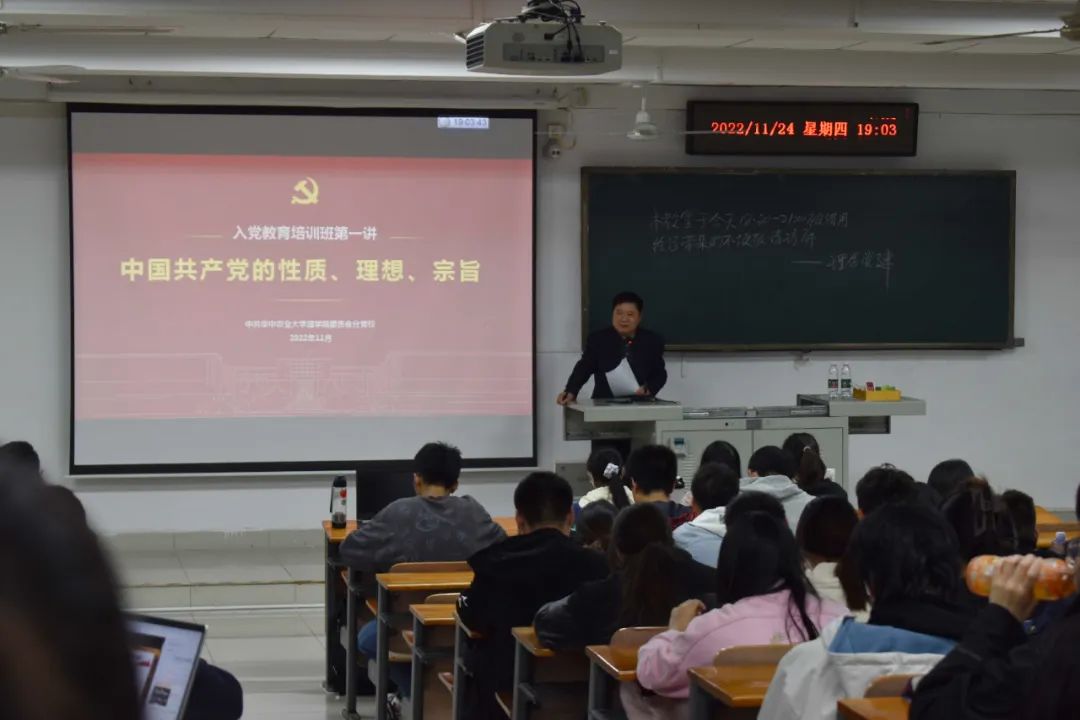 11月24日晚三教B305,中共麻豆 理学院委员会分党校开展了入党教育培训班第一次线下党课专题学习,理学院党委书记涂俊才书记授课,授课主题是关于《中国共产党的性质、理想、宗旨》,理学院本研入党积极分子参加集中学习。