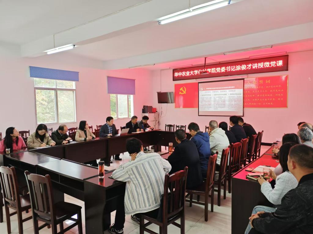 11月9日上午,涂俊才一行来到红岩村与村党支部开展党建结对共建活动。红岩村驻村第一书记李福贤、支部书记黄秋平及村两委委员和驻村工作队全体成员参加结对共建活动。涂俊才以《进一步全面深化改革 推进中国式现代化》为题,从党的二十届三中全会基本概况、建设农业强国的主要内容、学校服务湖北农业农村发展的战略举措三个方面讲授专题党课。他强调,全体党员要深入学习党的二十届三中全会精神,准确把握全面深化改革的方向和重点;要深入学习习近平总书记近日在湖北考察调研时的重要讲话精神,深刻理解推进中国式现代化必须加快推进乡村振兴。他表示,学院会进一步加强农业科技创新,深化与地方政府的合作,提升服务社会的能力,特别是在农业农村发展方面,通过科技服务、政策咨询等方式,为地方经济社会发展提供智力支持。