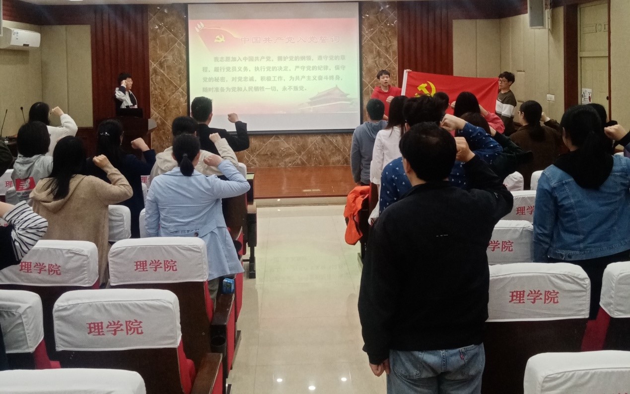 首先,全体党员面对鲜艳的党旗,高举右手,紧握拳头,铿锵有力地重温了入党誓词,表达了为党的事业奋斗终生的信念和决心。随后,全体师生对党在新民主主义革命时期的奋斗史进行了再学习,陈元欣同学为大家重点介绍了1934年底红军长征途中的湘江战役。学生党支部书记石玉带领全体党员学习了《中国共产党纪律处分条例》和《关于新形势下党内政治生活的若干准则》中有关党员不能信教的部分内容,引导大家做坚定的马克思主义无神论者,牢固树立马克思主义宗教观,正确认识和对待宗教。