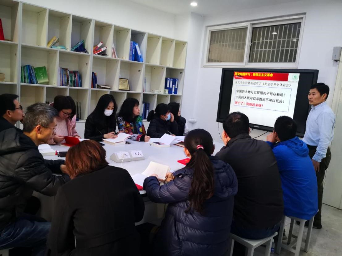 4月2日下午,行政教工党支部在逸夫楼B221开展新民主主义革命时期党史专题学习支书书记成协设从新民主主义革命的历史大背景、革命历程、历史意义和基本经验等方面进行讲解。