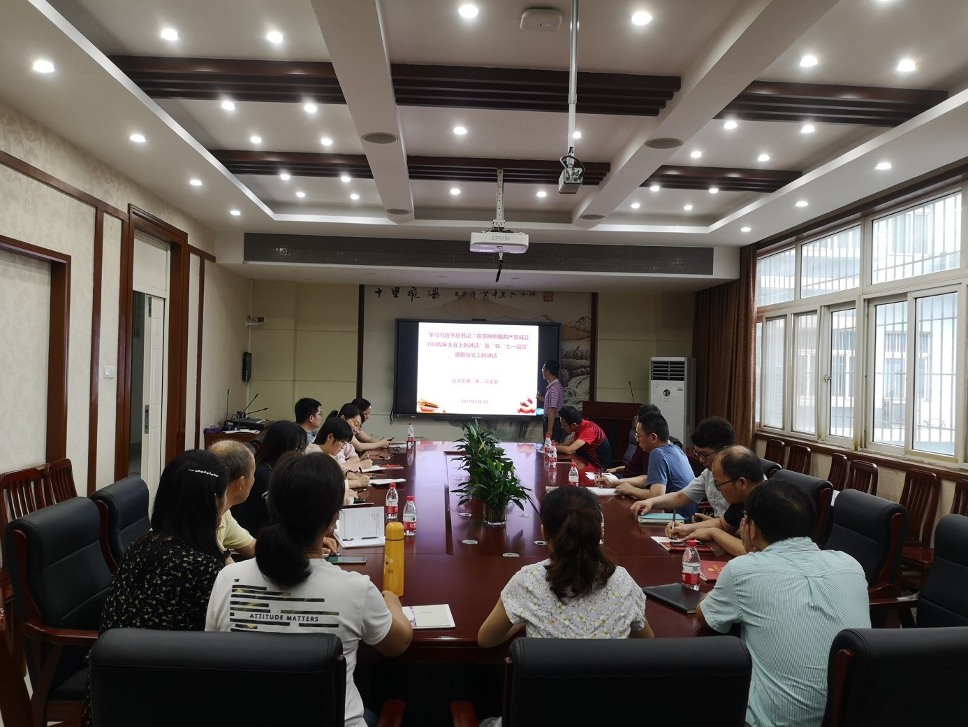 7月1日下午,物理系教工党支部在逸夫楼B109党群之家召开庆祝中国共产党成立100周年专题学习会议,会议由支部组织委员后德家主持,副院长谭佐军和物理系全体老师出席会议。