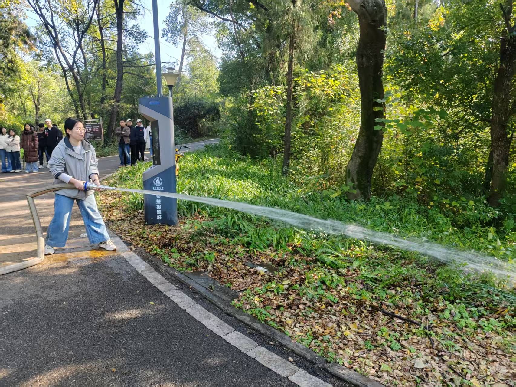 最后是消防栓实操环节。同学们两人一组分工明确、默契配合:一人担任操作主力,负责连接水带与接口、平稳开关阀门;另一人作为辅助配合,做好工具递接、现场环境观察和安全提醒,实操中可互换角色,确保每人都能完整掌握操作流程。完成操作后,两人协同将工具归位、清理现场,确保实操有序高效,既提升协作能力,也扎实掌握消防栓使用技能。