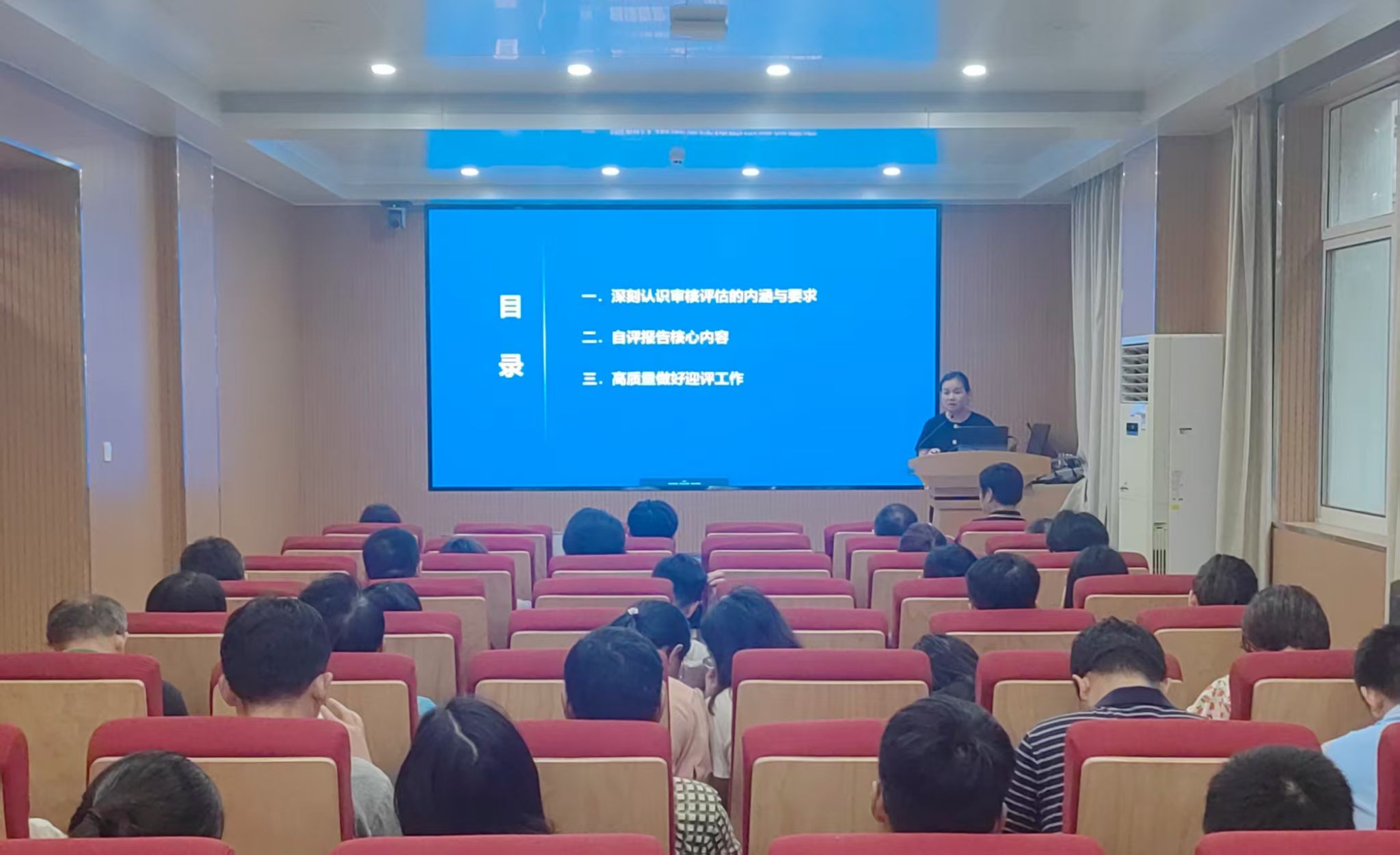 曹敏惠结合学院实际,详细解读了自评报告的核心内容与学校教育教学改革的特色亮点,包括“神经元式课程体系”“五育融通”“科教融汇、产教融合”等关键举措。她特别提醒教师们要熟悉学校、学院基本情况和相关数据,掌握应知应会内容,在专家听课、材料调阅、座谈访谈等环节中做到心中有数、从容应对。